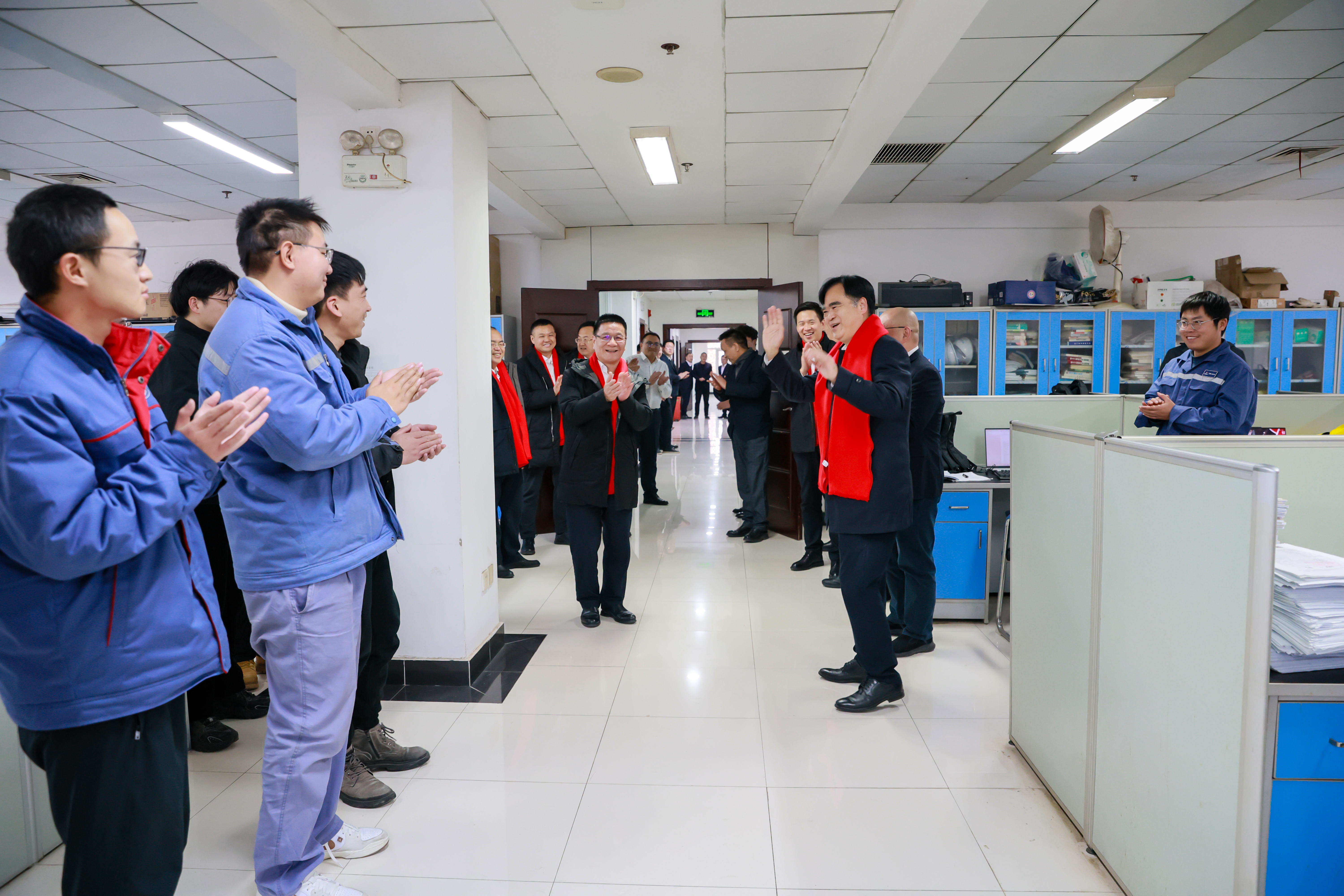 下午,中冶武勘组织了线上和现场团拜活动。14时,线上团拜活动正式开始,中冶武勘领导班子成员以视频连线的形式,向在外各分子公司及海内外各重点在建项目部员工送去了新春的美好祝福。随后,中冶武勘领导班子成员前往总部和光谷各办公区域,向全体员工拜年,向一线干部职工致以新春问候和美好祝愿。团拜活动中,大家欢声笑语,气氛热烈,进一步凝聚了人心,极大增强了团队的向心力和凝聚力。